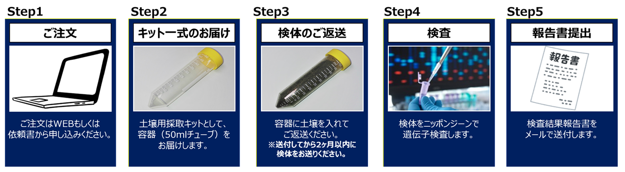 本サービスは、お客様よりお送りいただきました「土壌」や「材片」を用いて植物病の遺伝子検査を行うサービスです。
